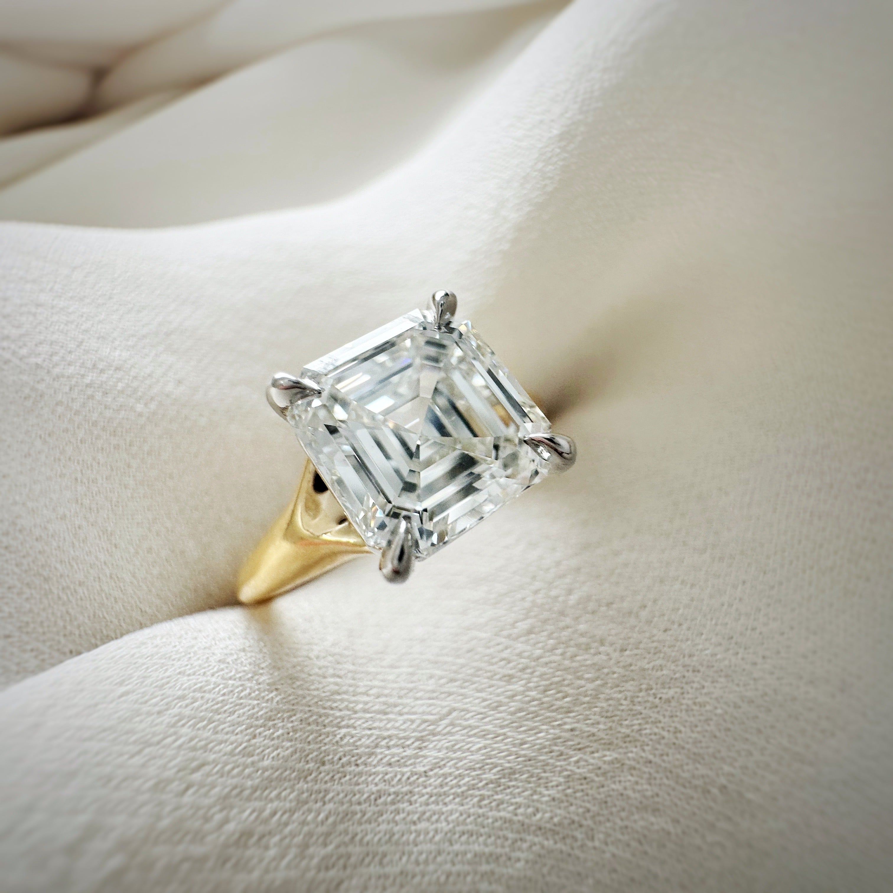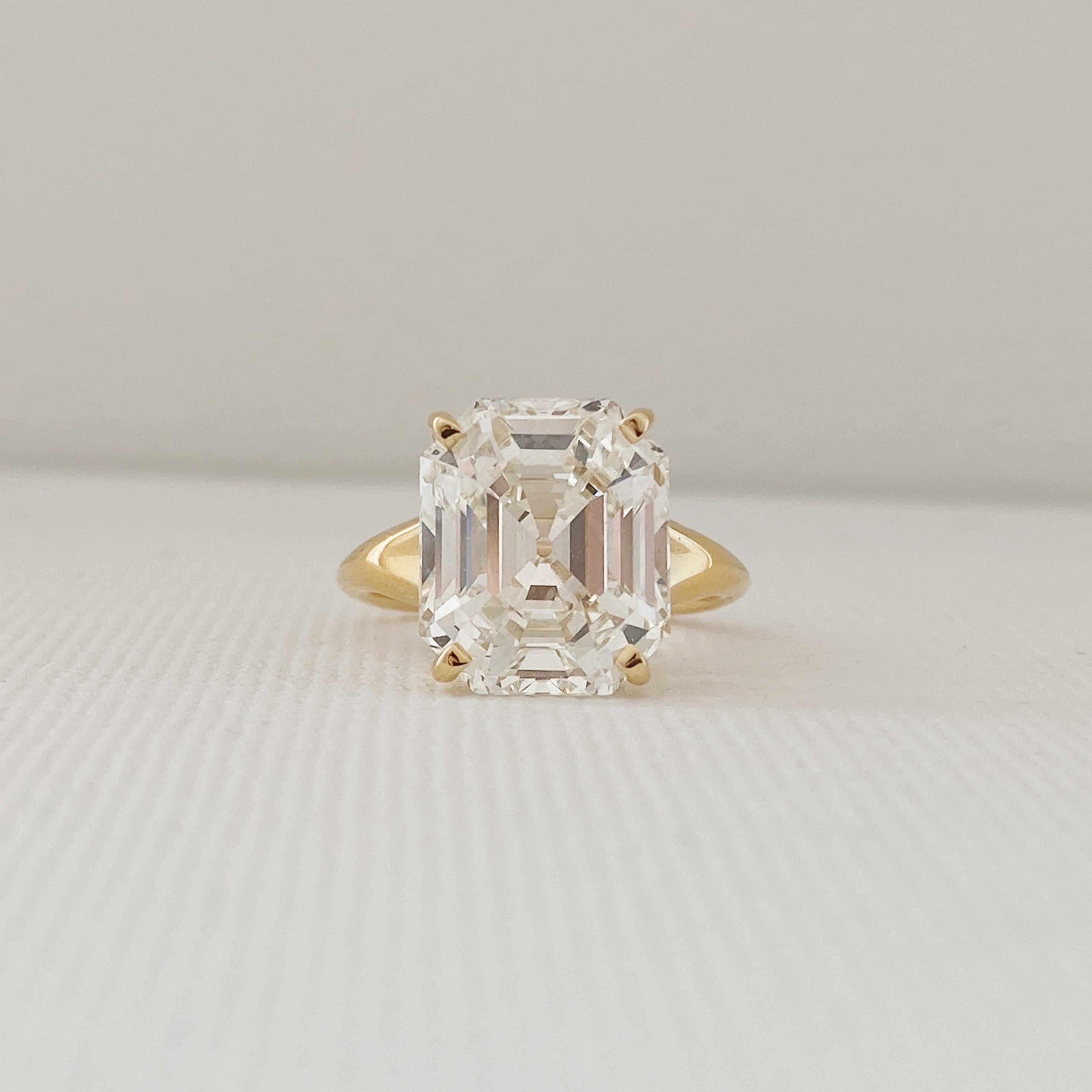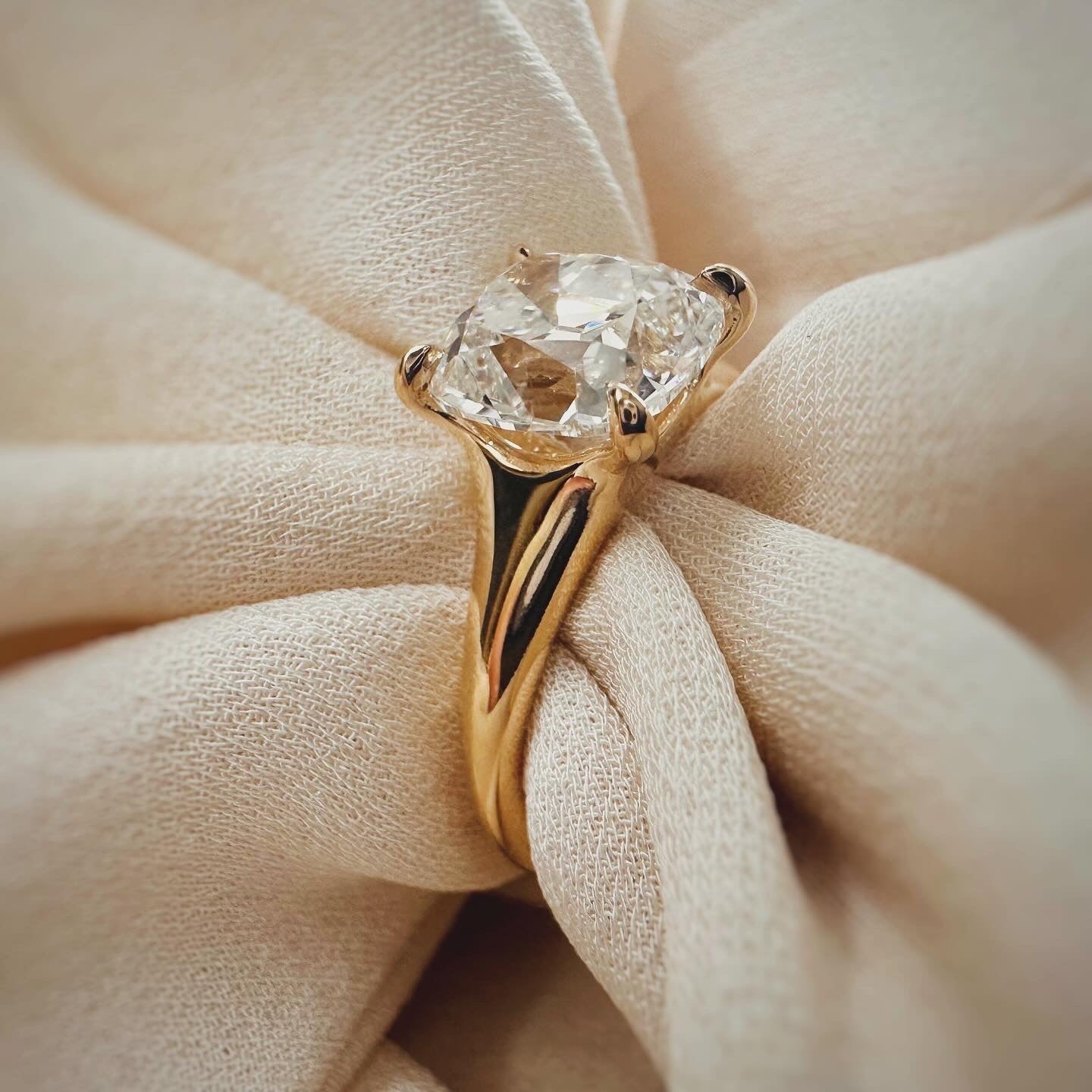 The Dea pays tribute to nature’s beauty with organic curves that play between light and shadow. Lines leading up to the center stone draw your eye from all angles, adding a unique twist to the classic, prong solitaire ring design.
