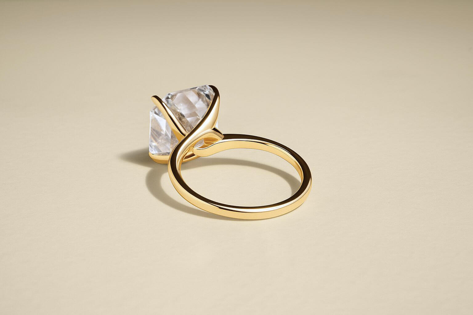 The Dea pays tribute to nature’s beauty with organic curves that play between light and shadow. Lines leading up to the center stone draw your eye from all angles, adding a unique twist to the classic, prong solitaire ring design.