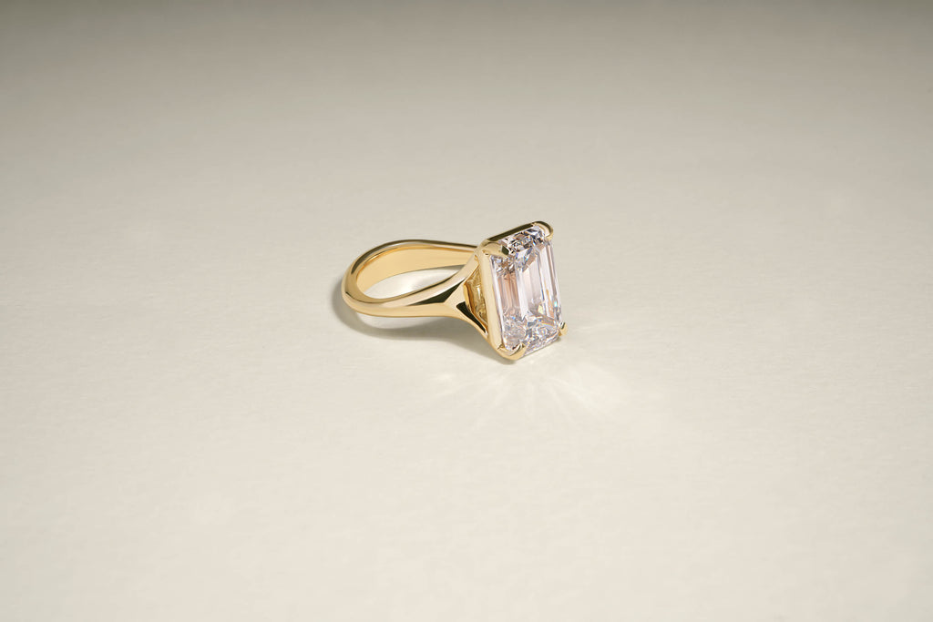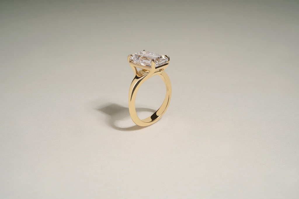 The Dea pays tribute to nature’s beauty with organic curves that play between light and shadow. Lines leading up to the center stone draw your eye from all angles, adding a unique twist to the classic, prong solitaire ring design.